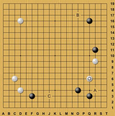 次の黒の応手はAの小林流か?BあるいはCの中国流系統か?