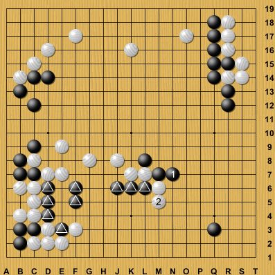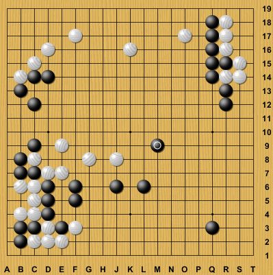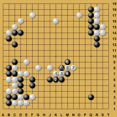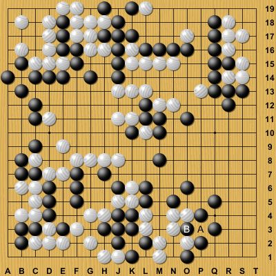 結局実戦ではこの碁の急所とも言えるポイントを白に打たれてしまった