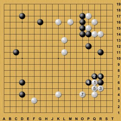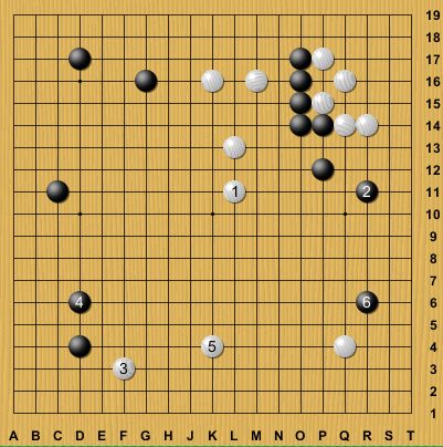 とりあえず最後の大場である下辺に展開して黒から6のカカリ