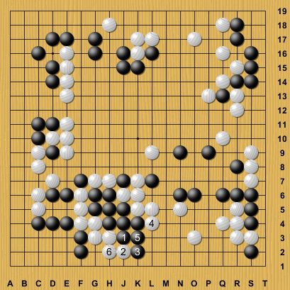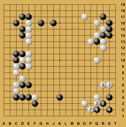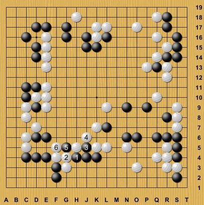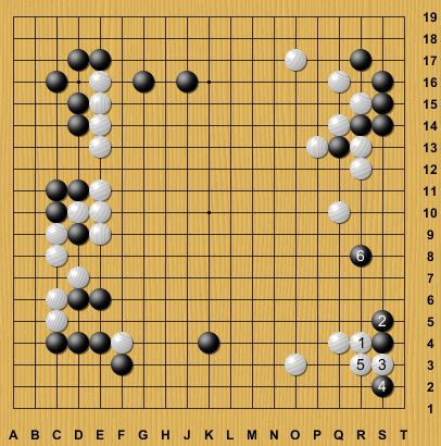 黒が手堅く治まってきたので4のトビを利かして最後の大場へ6のヒラキ。