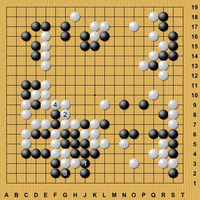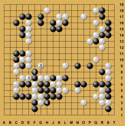 黒が1に切って2のアテを打った後の攻め合いなんだけど